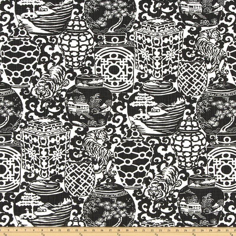 | Black Oriental Toile Fabric Oriental Fabric Jungle Safari Fabric |