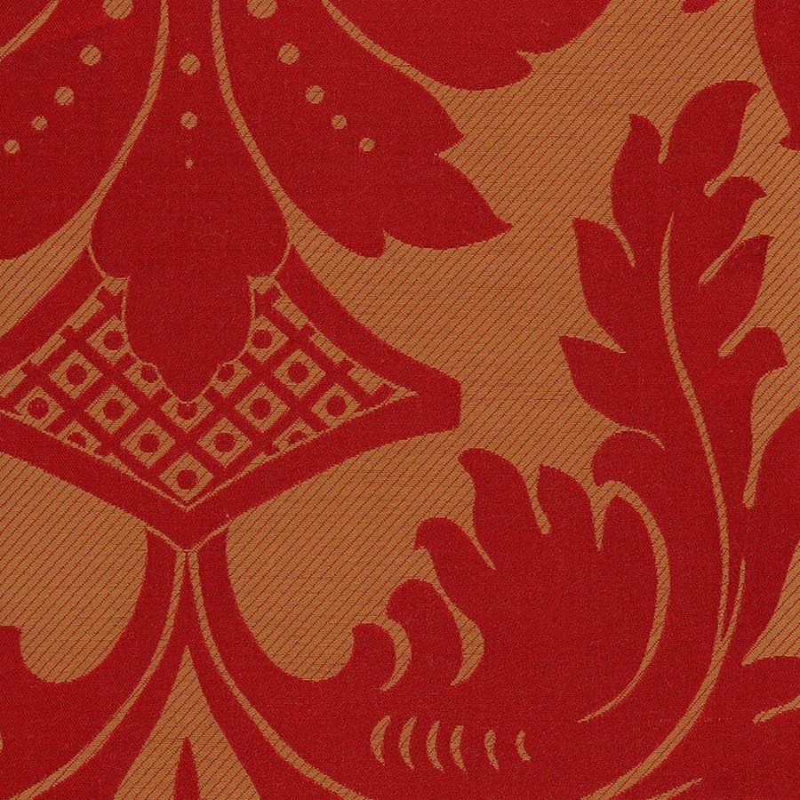 | Large scale silk and linen blend damask fabric. Red and gold damask. |