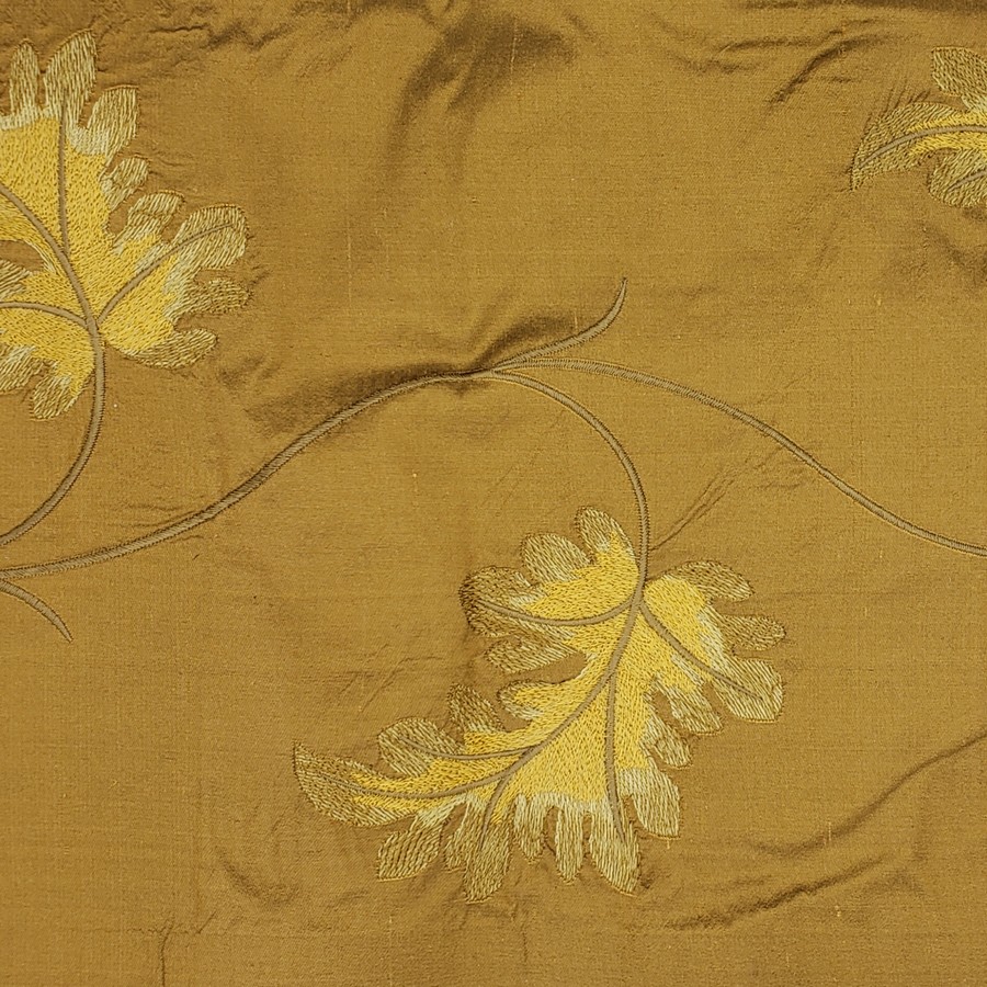 | Lovely leaves and vines on solid silk. This floral silk is perfect for bedding and draperies. |