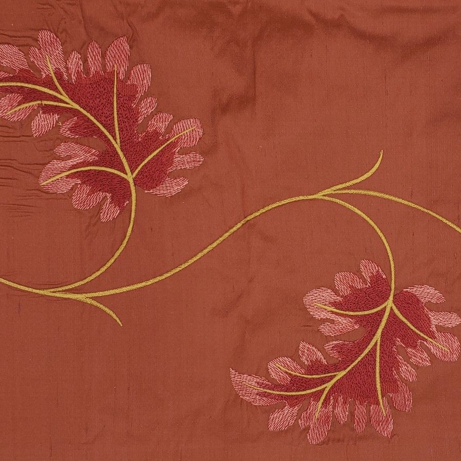 | Lovely leaves and vines on solid silk. This floral silk is perfect for bedding and draperies. |