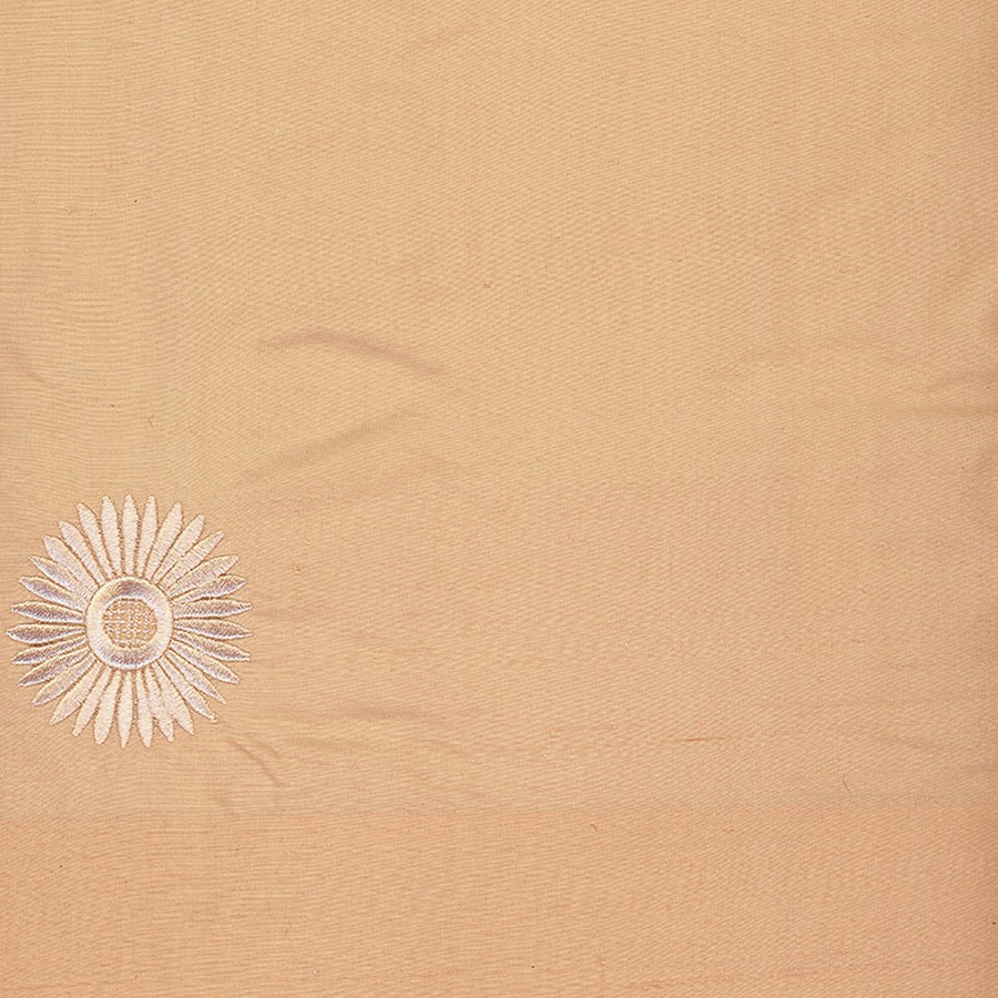 Embroidered silk with a sun or floral motif sprinkled throughout. Artisan Collection