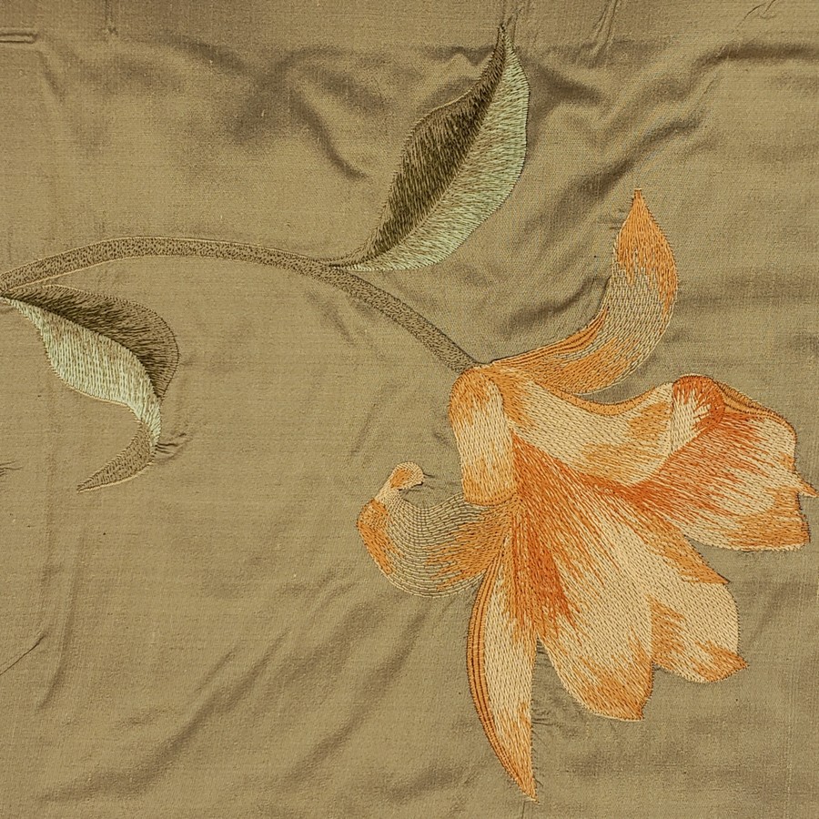 | Lovely lillies on a silk fabric. Floral silk fabric for draperies, bedding, pillows and more. |