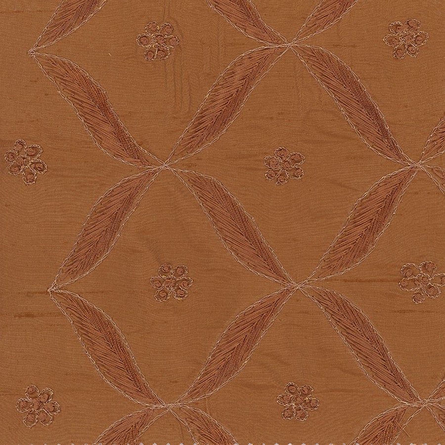 | Beautiful floral diamond embroidered silk. Pattern runs up the roll. |