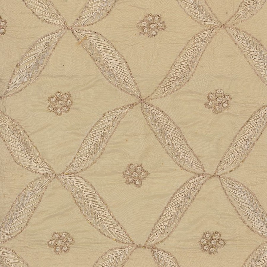 | Beautiful floral diamond embroidered silk. Pattern runs up the roll. |