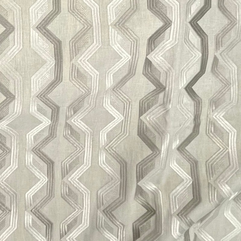 | This lovely Swavelle/Millcreek embroidered fabric features a classic diamond lattice pattern. The embroidery width is 54 inches and the pattern runs up the roll. Perfect for drapery panels. |