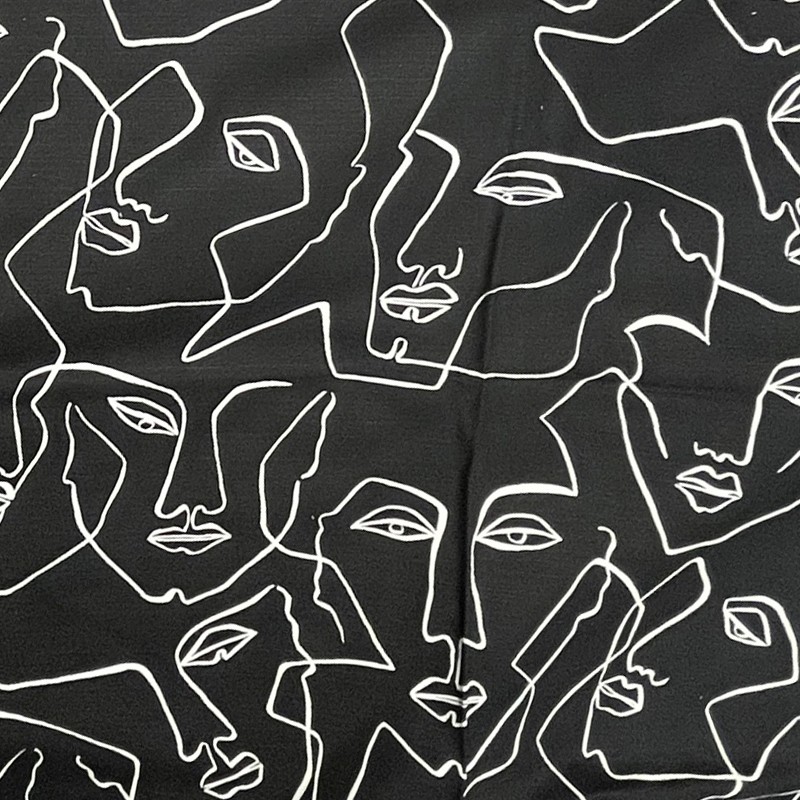 Modern face design on the sumptous ground cloth. Fabric has a soil and stain repellent finish.