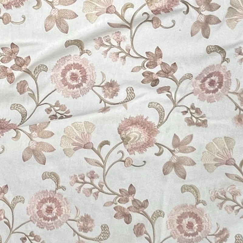 | Vibrant embroidered jacobean floral design. This beautiful embroidered flower pattern runs up the roll. Embroidery width is 52.5 inches. |