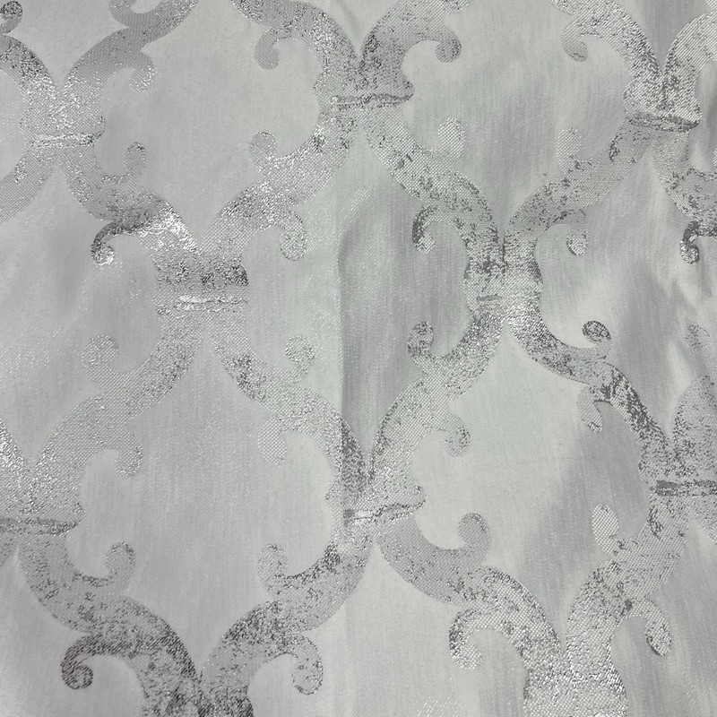 | Classic damask with a metallic shine. Wide width drapery fabrics. Scrolling lattice design. |