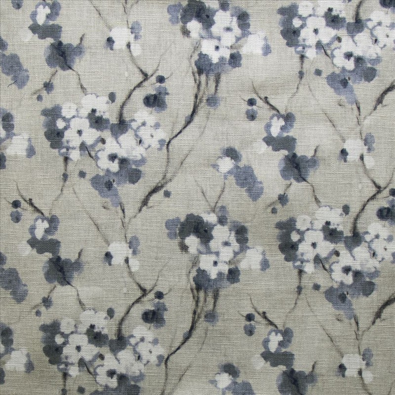 | Kasmir Prints Blue Brown Charcoal Cream Gray White Floral Transitional Large Scale |