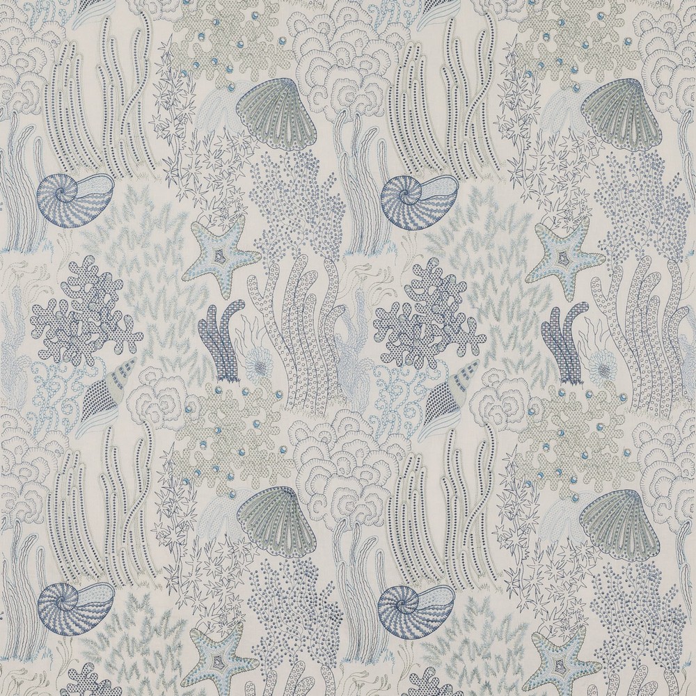 | Cowtan And Tout beautiful Seashells And Corals Embroidered On A 100% Linen Ground Cloth. Passes Cal 117-2013 Fr Tests. |