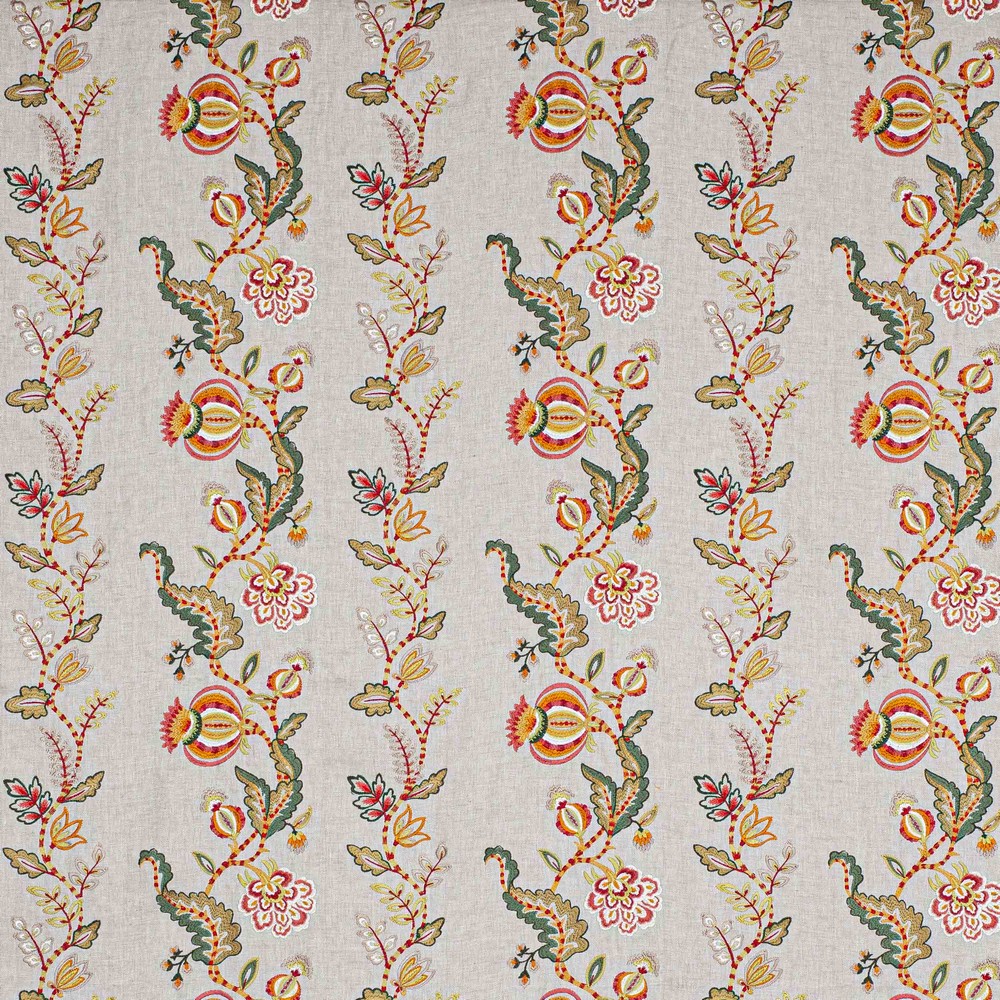 | Colefax And Fowler stunning And Vibrant Jacobean Floral Embroidered Stripe. |