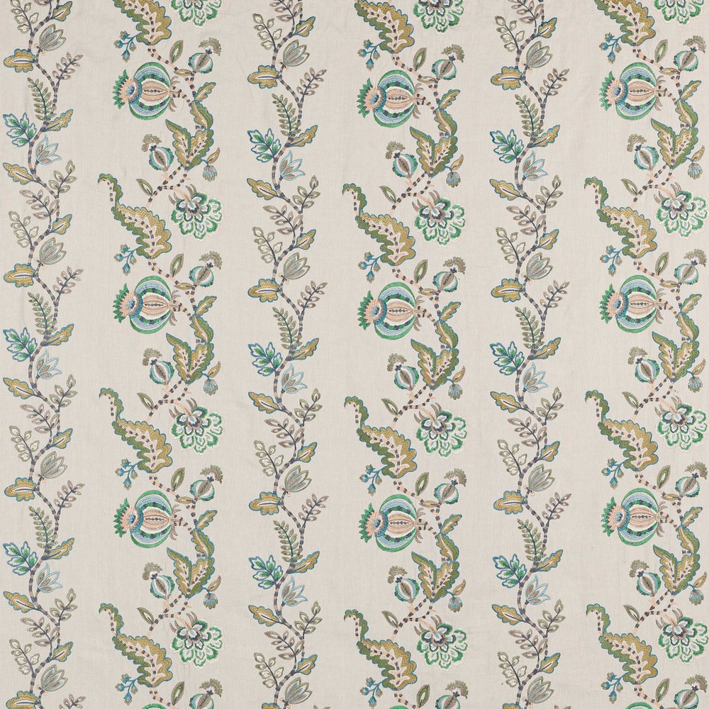 stunning And Vibrant Jacobean Floral Embroidered Stripe.