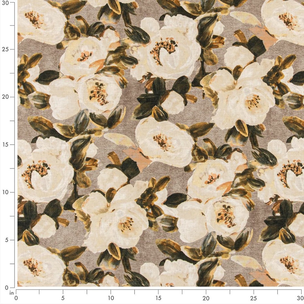 | Charlotte Fabrics Drapery & Sheers Linen Prints Beige/Tan Suitable for Commercial Use Residential Bedding Floral Fabric Lifeguard Finish: Permanently Repels Liquid, Stain, Soil & Odor Stain Resistant Shown Not Railroaded (Up the Roll) Large Print Floral Fabric Big Flower Fabric |