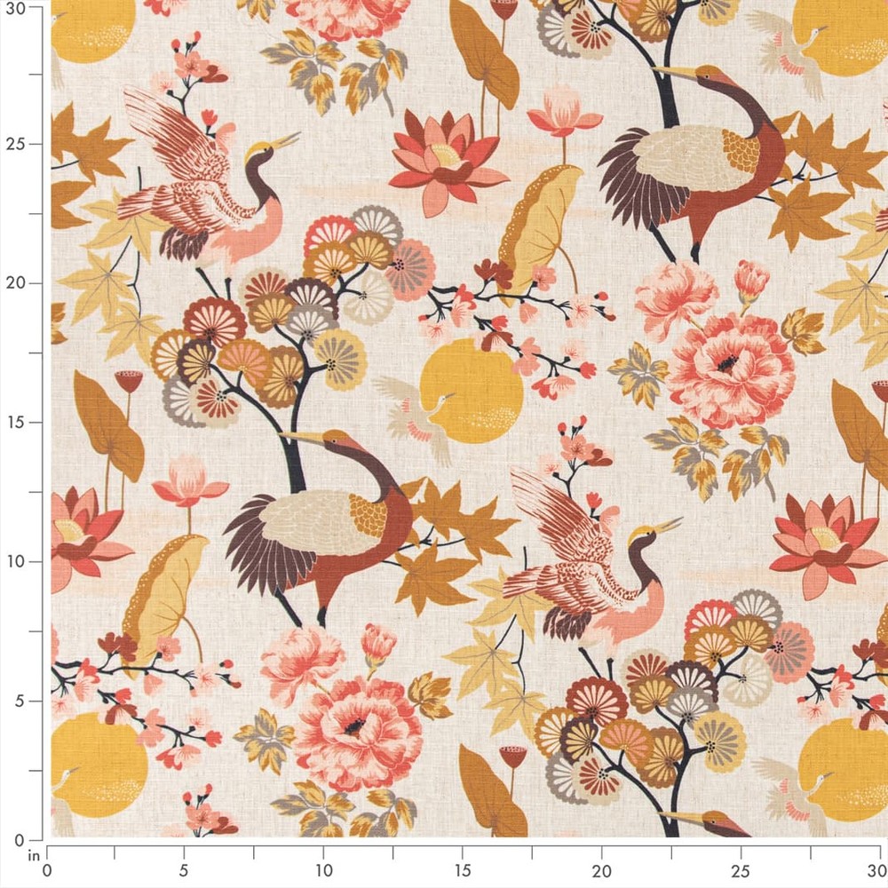 | Charlotte Fabrics Drapery & Sheers Linen Prints Suitable for Commercial Use Residential Bedding Floral Fabric Lifeguard Finish: Permanently Repels Liquid, Stain, Soil & Odor Stain Resistant Shown Not Railroaded (Up the Roll) Birds And Feather Fabric Oriental Fabric |