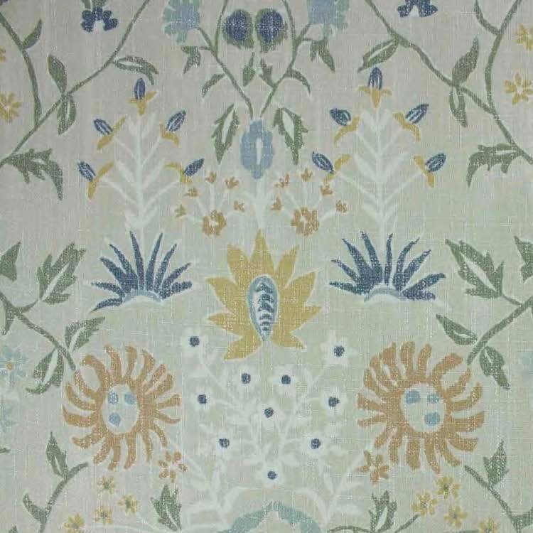 | Ethnic and global floral fabric. Pattern runs up the roll. |