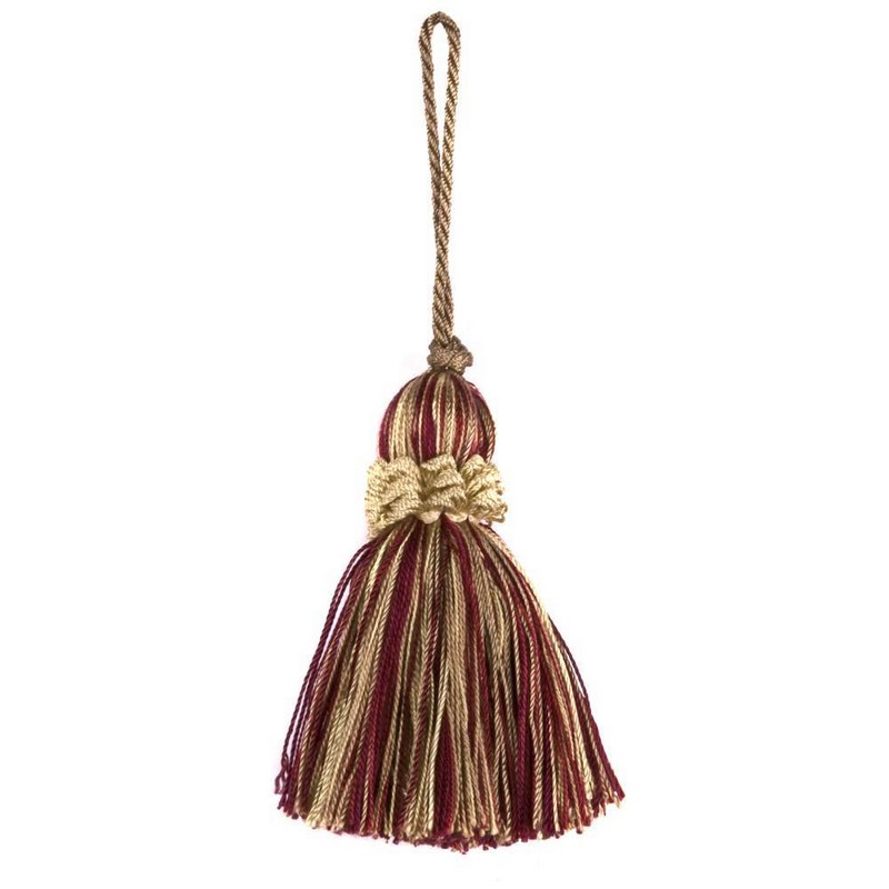| Kasmir Trim Essentials Colors: Brown Purple Red Key Tassel Kasmir Exclusive Rope Diameter: 1/16 Inches Overall Tassel Body:3 4/16 Inches Total Length:5 14/16 Inches Tassel Diameter:1 Inches |