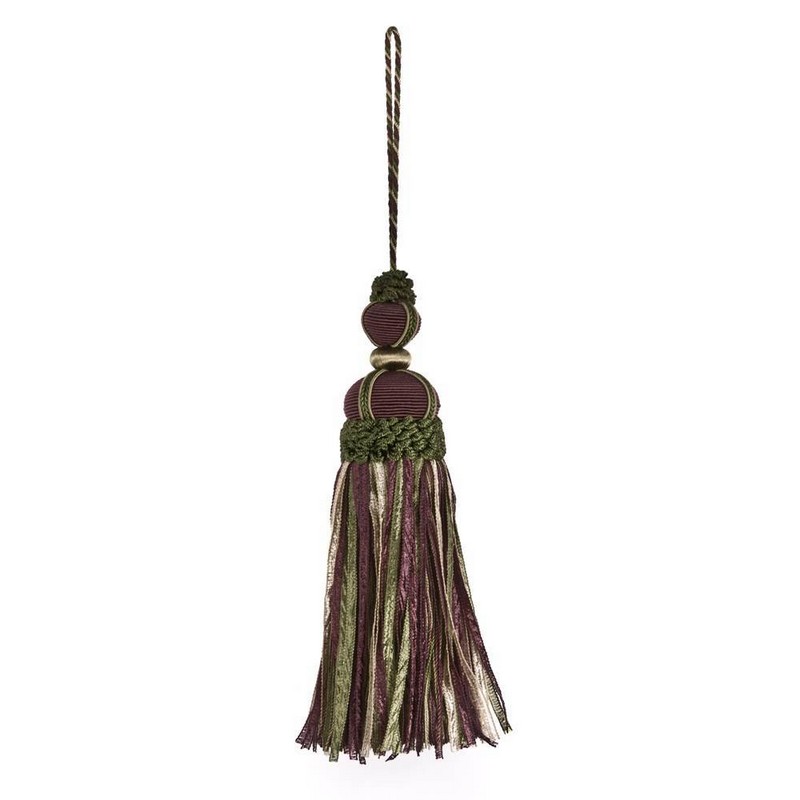| Kasmir Trim Essentials Colors: Brown Gray Key Tassel Kasmir Exclusive Rope Diameter: 1/16 Inches Overall Tassel Body:6 4/16 Inches |