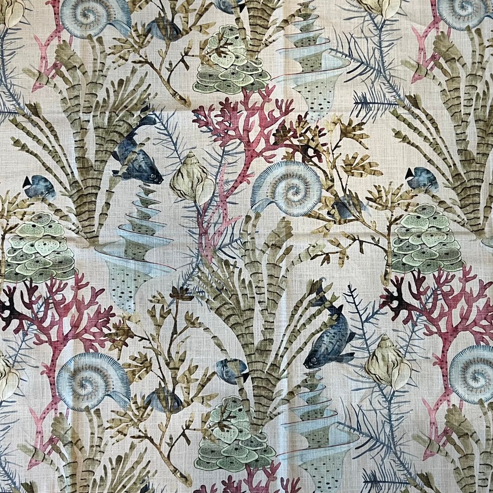 | Whimsical sea plants, sea shells and fish combine to create a wonderful coastal cotton print. Multipurpose. Light Duty Fabrics Fish And Friends Fabric Sea Shell Fabric |