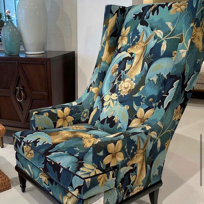 | This classic deer tapesty with its full width repeat tells a story. Perfect for upholstery. |