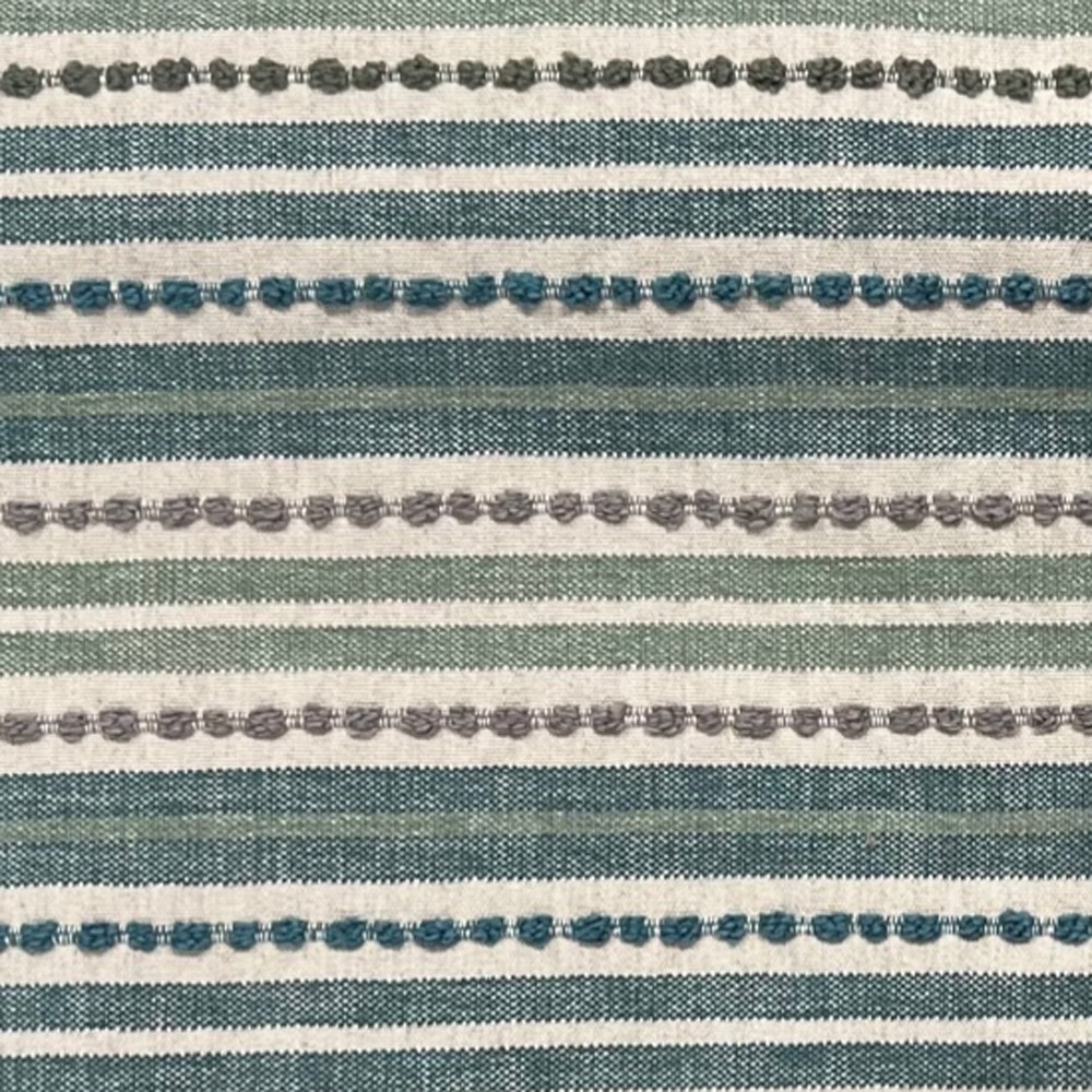 Linen blend striped fabric with a dotted embroidered detail stripe.