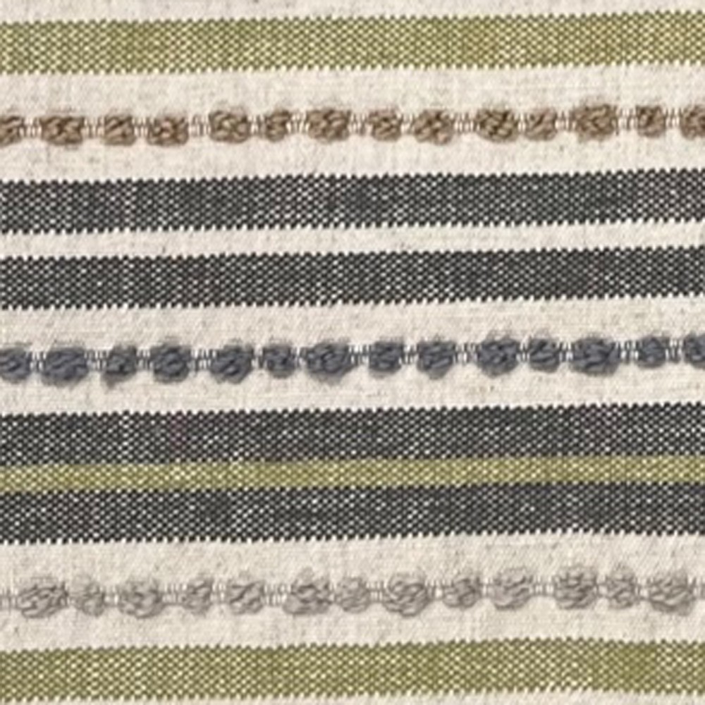 Linen blend striped fabric with a dotted embroidered detail stripe. |
