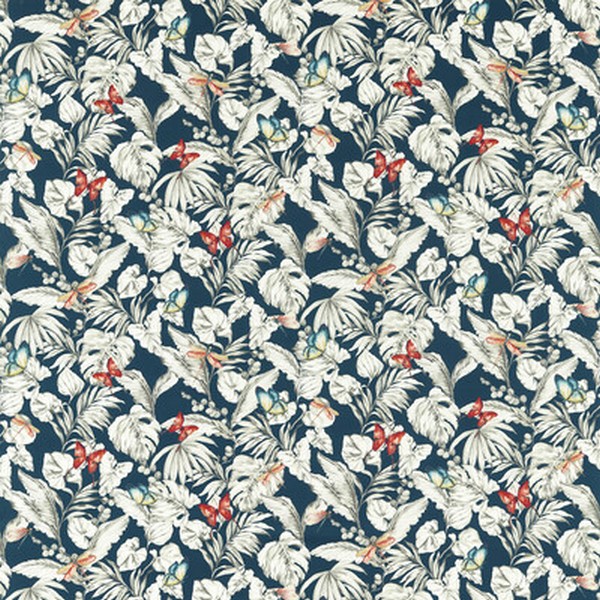 | PRINT BOTANICAL & FLORAL CLARKE & CLARKE AMAZONIA CLARKE AND CLARKE Colors: DARK BLUE GREY RED |