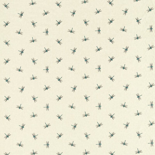 | EMBROIDERY ANIMAL/INSECTS NOVELTY CLARKE & CLARKE AMAZONIA CLARKE AND CLARKE Colors: TEAL IVORY Dragonfly Embroidery |