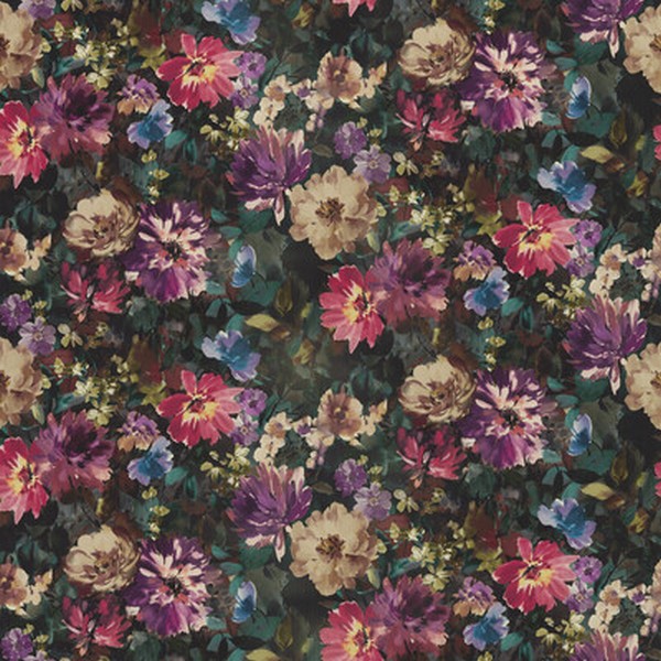 | VELVET PRINT BOTANICAL & FLORAL CLARKE & CLARKE EXOTICA 2 CLARKE AND CLARKE Colors: PURPLE GREEN |