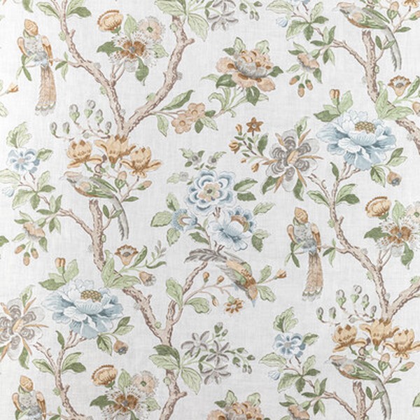 | PRINT BOTANICAL & FLORAL COREY DAMEN JENKINS TRAD NOUVEAU KRAVET COUTURE SOFTENED ; Colors: BLUE GREEN BLUE Birds And Feather Fabric Traditional Floral Fabric |