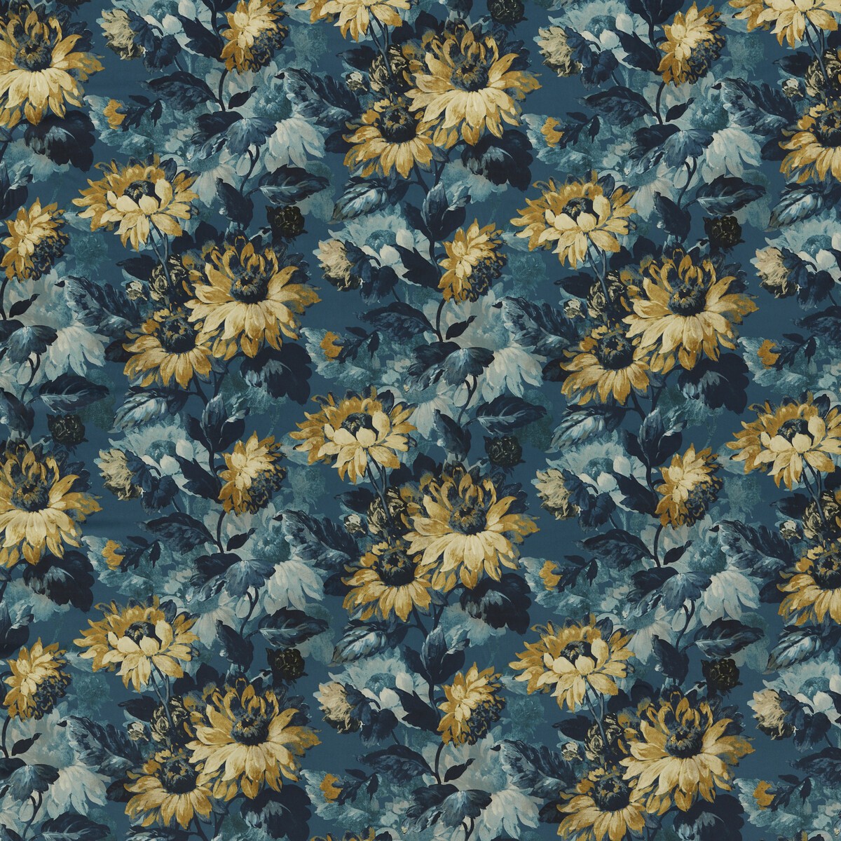 | PRINT VELVET BOTANICAL & FLORAL CLARKE & CLARKE MARIANNE CLARKE AND CLARKE Colors: DARK BLUE YELLOW |