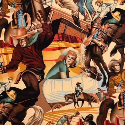 | Cotton Sheeting Pin Up Fabric Novelty Western Fabric Cowboy Fabric |