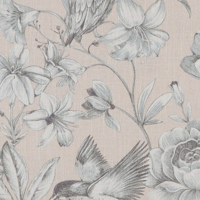 | Printed Fabric Traditional line bird floral print by Hilary Farr. |