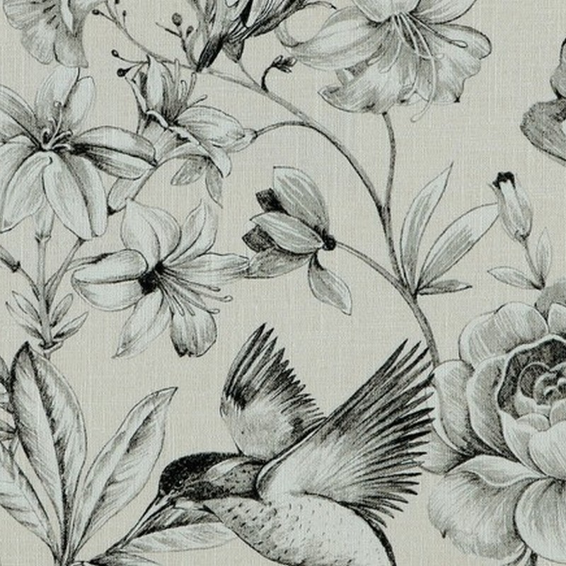 | Printed Fabric Traditional line bird floral print by Hilary Farr. |