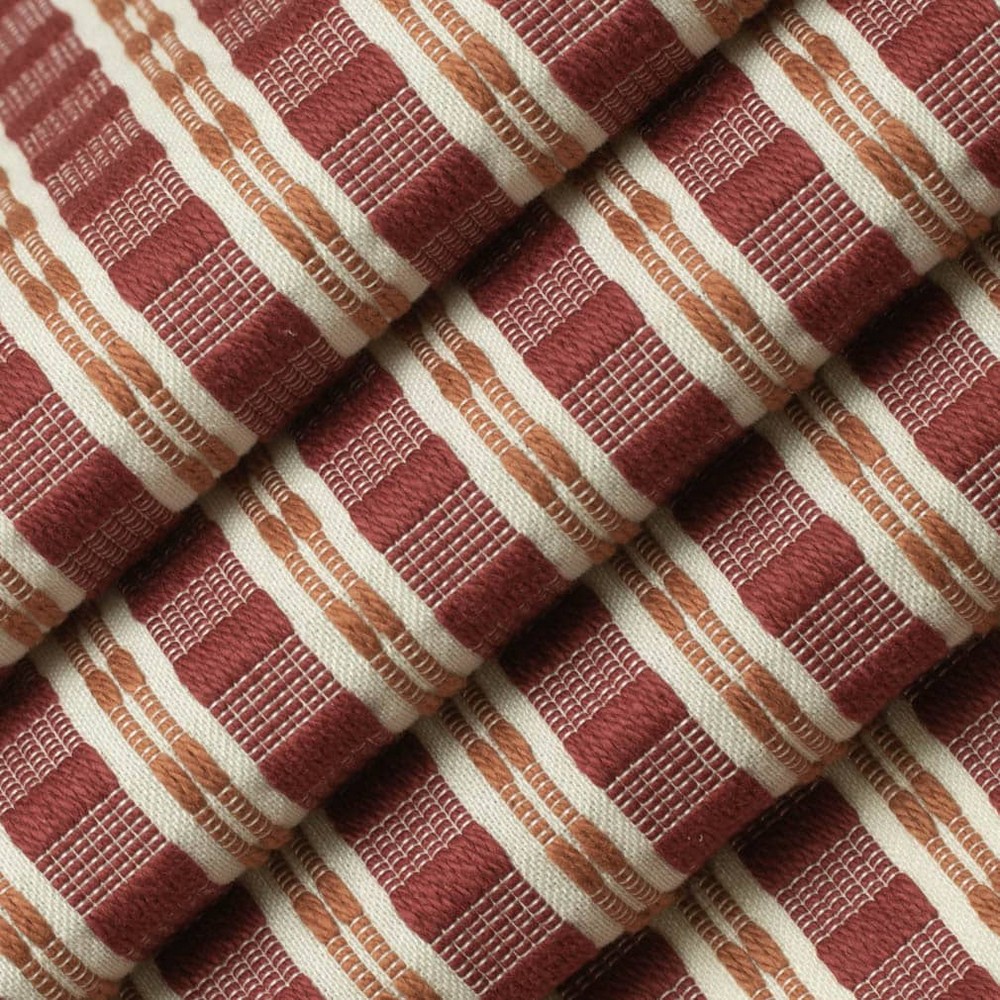 | Charlotte Colors Shades of Redwood Red & Burgundy Suitable for Contract,Home Stripe Woven Patterns Made In America Upholstery Shown Railroaded (Across the Roll) |