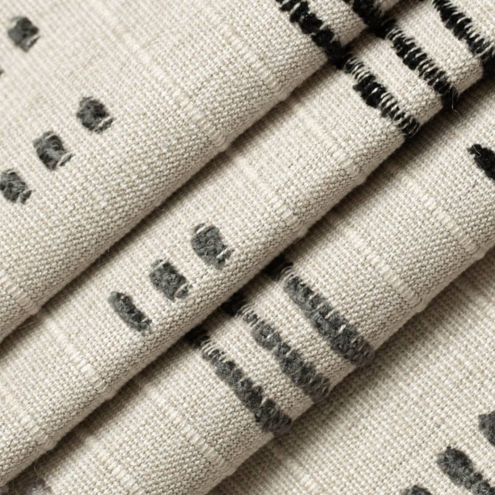 | Charlotte Colors Shades of Onyx Black,Grey & Silver Suitable for Contract,Home Abstract & Geometric,Global Woven Patterns Made In America Upholstery Shown Railroaded (Across the Roll) |