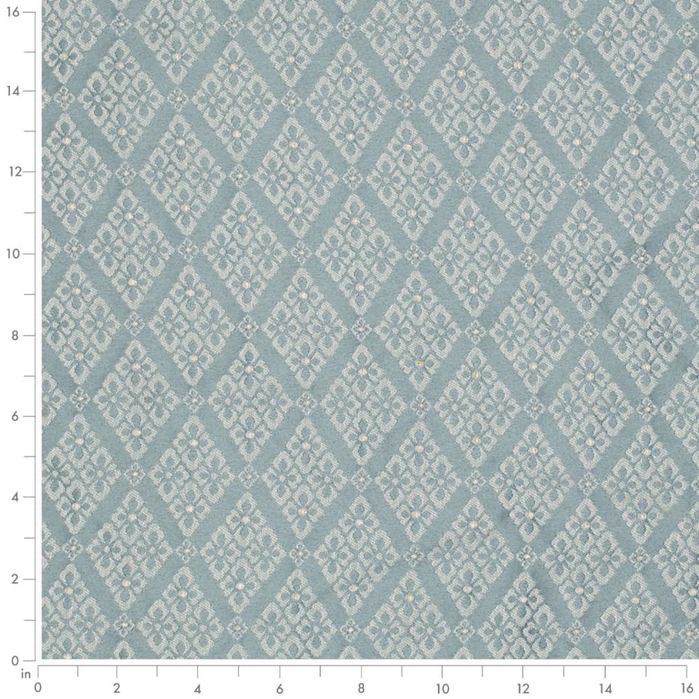 | Charlotte Fabrics Heirloom Aqua & Teal,Blue Suitable for Contract,Home Diamonds Woven Patterns Fade Resistant Fade Resistant Upholstery Shown Railroaded (Across the Roll) |