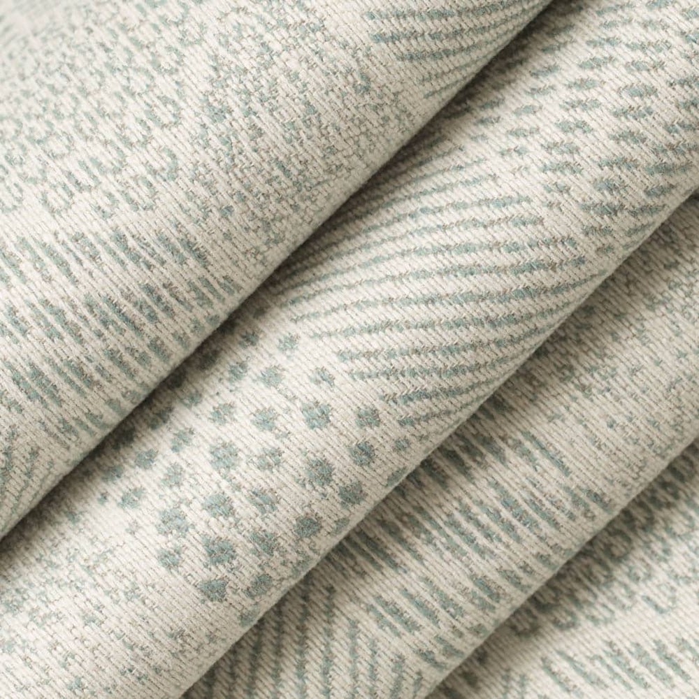 | Performance Colors Tranquil Aqua & Teal Suitable for Contract,Home Abstract & Geometric Woven Patterns Eco Friendly,Fade Resistant,Made In America,Performance Grade,Pet Friendly,Stain Resistant Ecofiber: Naturally Inherent Stain Resistance With No Added Treatment, Fade Resistant PFC Free, Low Carbon Footprint, Greenguard Gold Certified Upholstery Shown Railroaded (Across the Roll) |