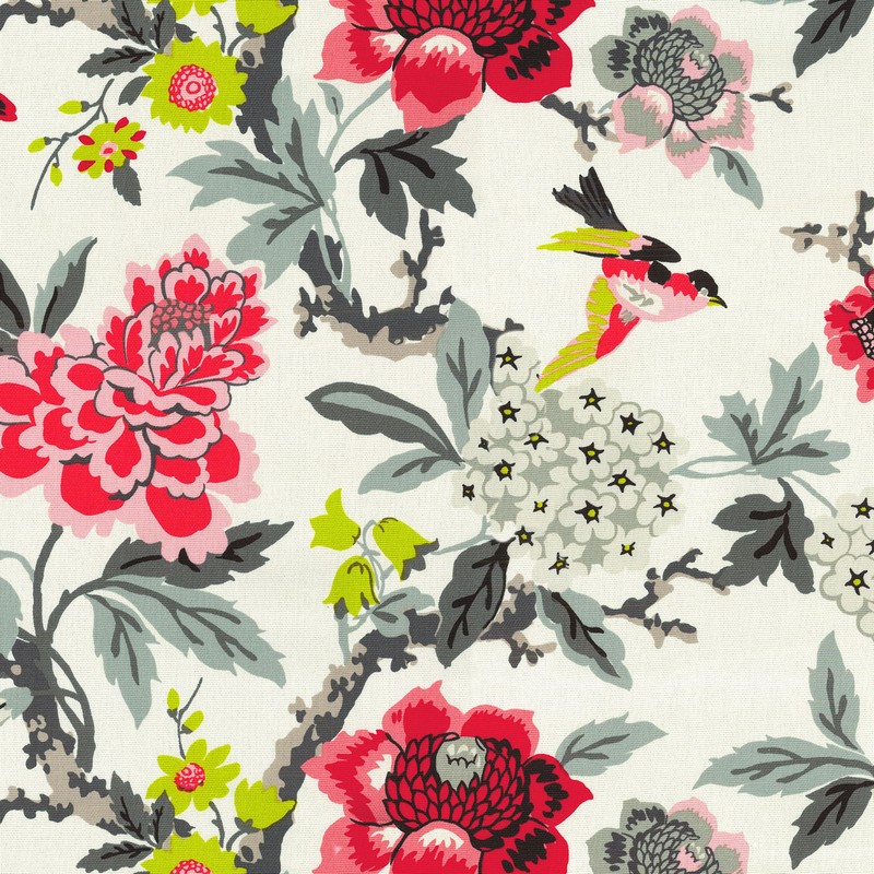 PK Lifestyles  Jacobean Floral Fabric  Large Print Floral Fabric  Birds and Feather Fabric