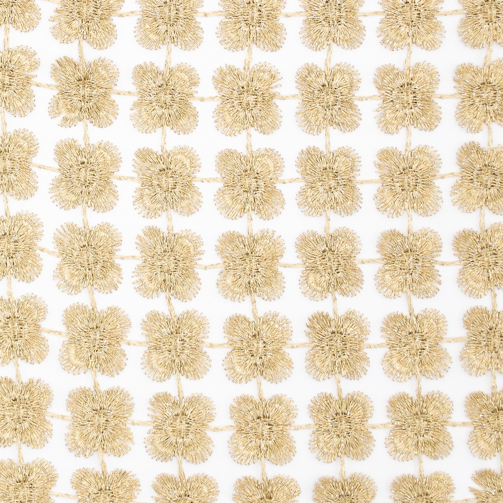 | Lovely, metallic sheer lace fabric with a shimmering floral pattern. Perfect for draperies and table toppers. Stunning special occasion fabric. |