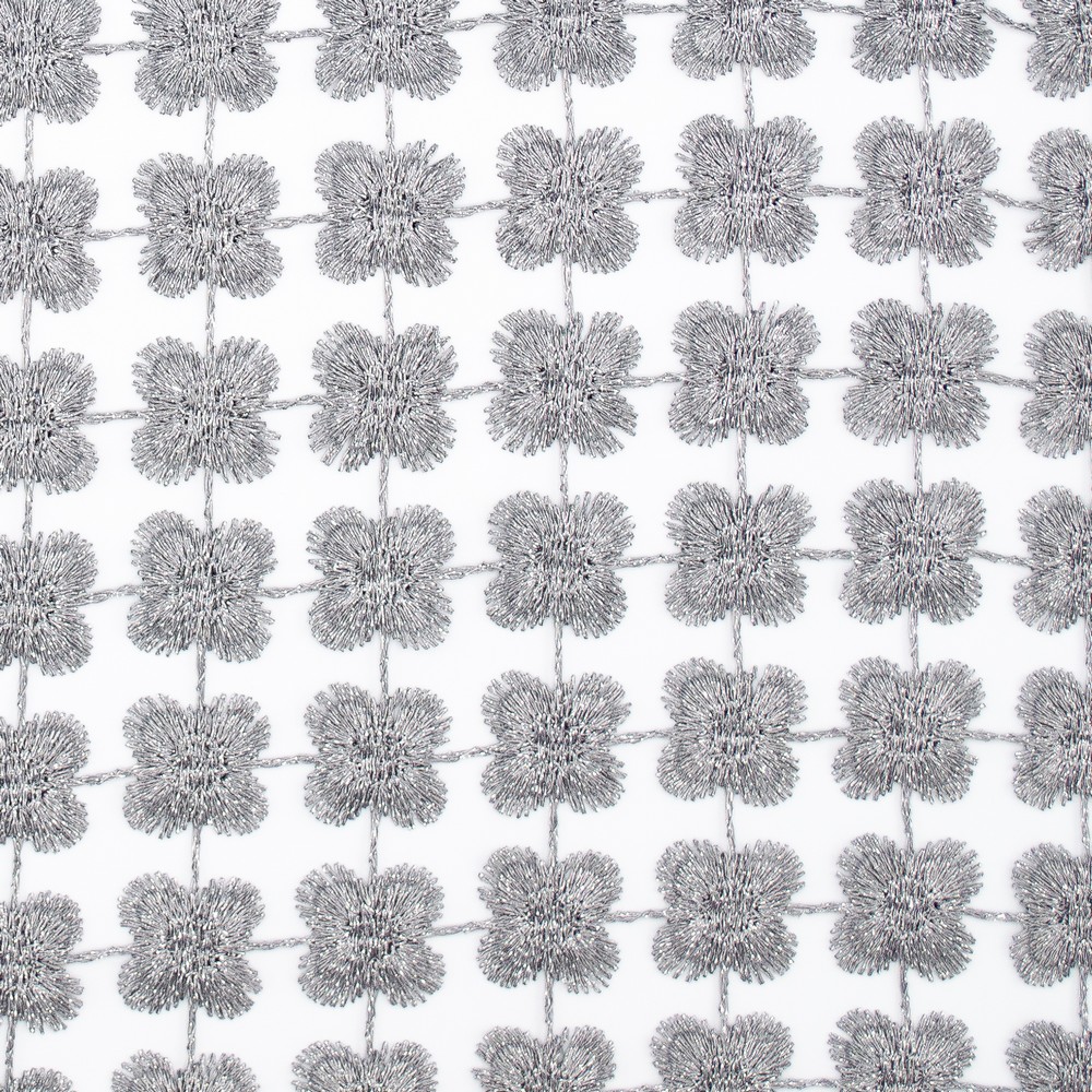 | Lovely, metallic sheer lace fabric with a shimmering floral pattern. Perfect for draperies and table toppers. Stunning special occasion fabric. |