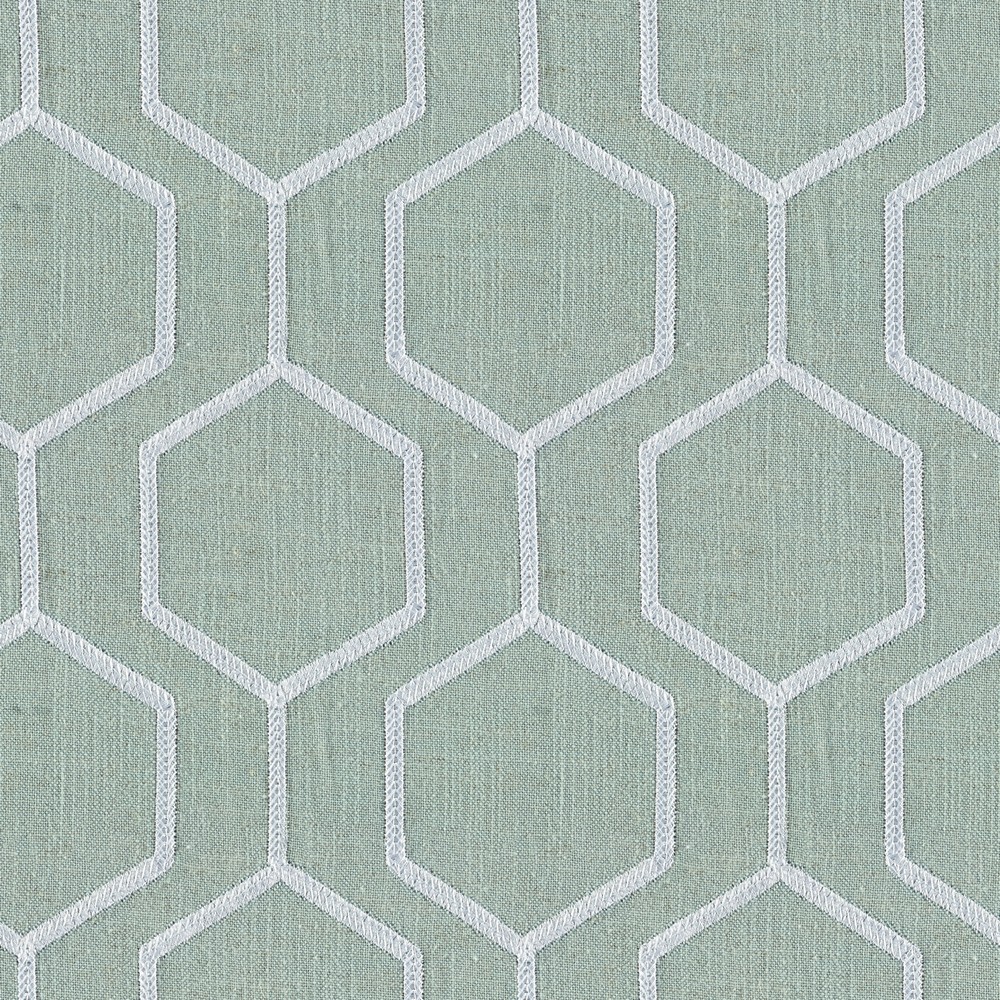 Embroidered linen blend (Lino) with a hexagon pattern. Modern geometric lattice drapery fabric.