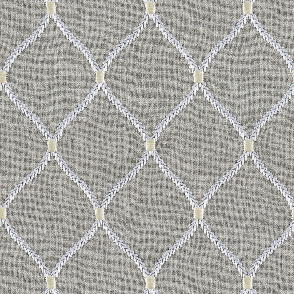 | Socrates Collection Embroidered linen blend (Lino) with a diamond ogee pattern. Delicate embroidered dot detailing. |
