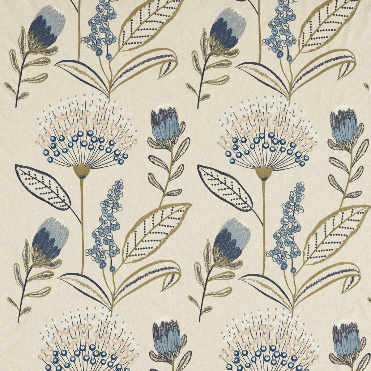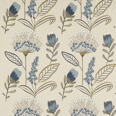 | EMBROIDERY BOTANICAL & FLORAL CLARKE & CLARKE BREEGAN JANE FABRICS CLARKE AND CLARKE EMBROIDERED ; Colors: SAGE BLUE BEIGE |