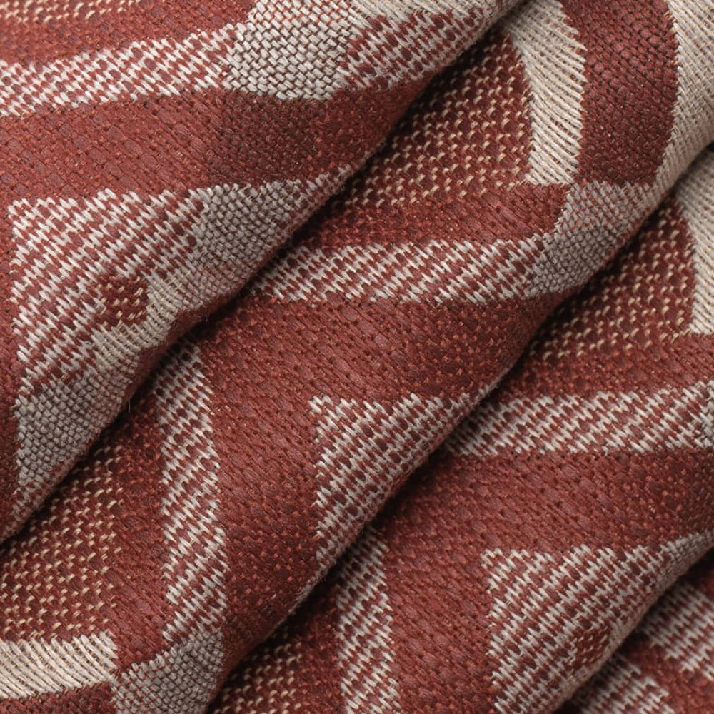 | Performance Colors Terracotta Orange & Rust,Red & Burgundy Suitable for Upholstery,Contract,Home Abstract & Geometric Woven Patterns Eco Friendly,Fade Resistant,Made In America,Performance Grade,Pet Friendly,Stain Resistant PFAS Free, Low Carbon Footprint, 30 Recycled Water Bottles Per Yard Naturally Inherent Stain Resistance With No Added Treatment, Fade Resistant Shown Railroaded (Across the Roll) |