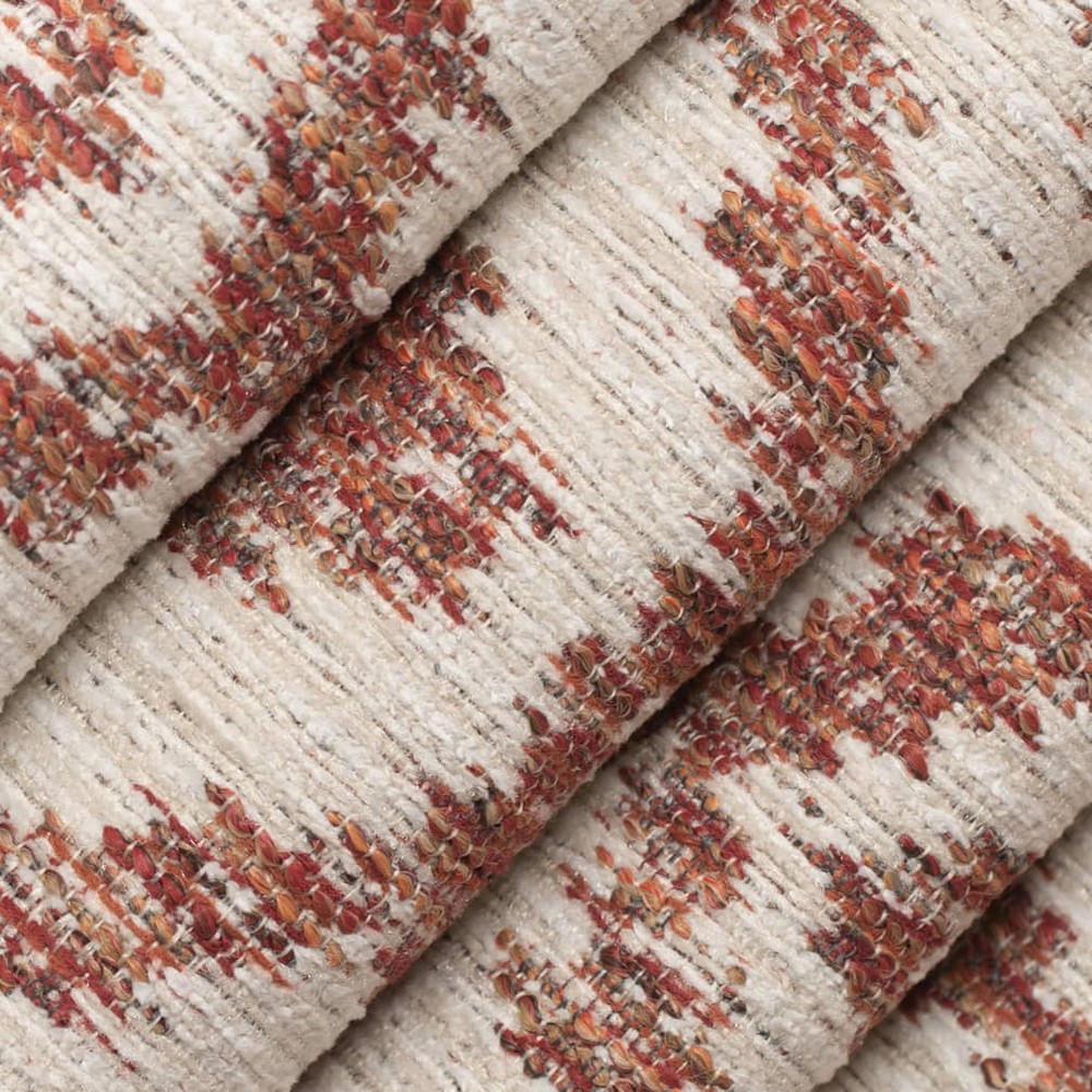 | Performance Colors Terracotta Orange & Rust,Red & Burgundy Suitable for Upholstery,Contract,Home Abstract & Geometric,Global Chenille,Woven Patterns Eco Friendly,Fade Resistant,Made In America,Performance Grade,Pet Friendly,Stain Resistant PFAS Free, Low Carbon Footprint, Greenguard Gold Certified Naturally Inherent Stain Resistance With No Added Treatment, Fade Resistant Shown Railroaded (Across the Roll) |
