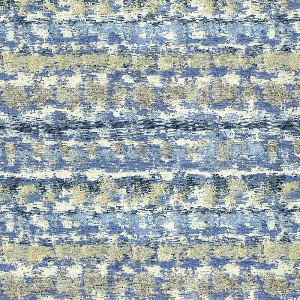 | ABBEYSHEA Blue Woven Jacquard Colors: Blue -Backing: 100% Acrylic Kiss Coat PFAS Free,California Proposition 65 compliant Colorfastness to Light AATCC 16 - Grade 4.0, 40 hr hours Upholstery Cabi 306 Denim shows an abstract multi-layer of color and yarn. |