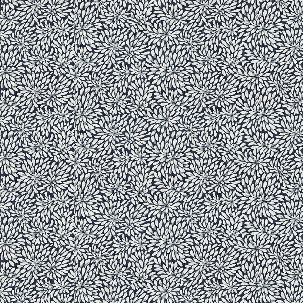 a subtle Navy blue blossom silhouette in a crepe effect to contrast off the chenille ground.