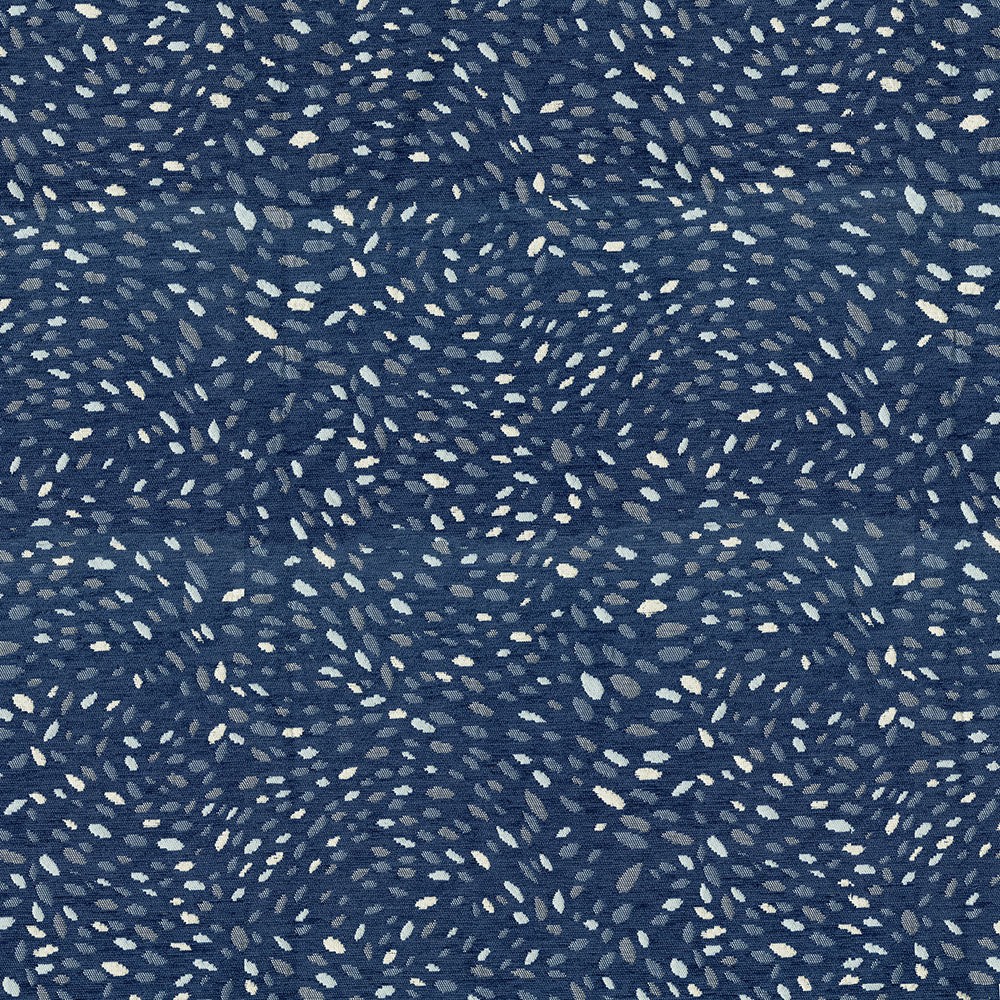 | ABBEYSHEA Blue Woven Jacquard Colors: Blue - Dots Backing: 100% Acrylic Kiss Coat Upholstery Contemporary overall with chenille ground featured in our navy blue color. |