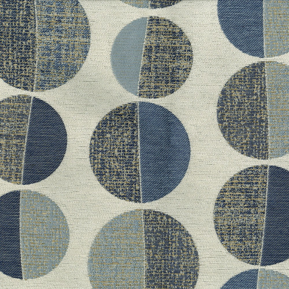 | ABBEYSHEA Blue Woven Jacquard Colors: Blue - Contemporary,Geometric Backing: 100% Acrylic Kiss Coat Colorfastness to Light AATCC 16 - Grade 5, hours Decorative Accessories,Pillows,Residential Seating,Upholstery features textural geometric circles shown in our blue shade. |