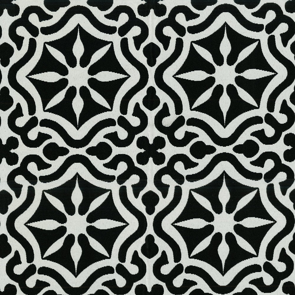| ABBEYSHEA Black Woven Jacquard Colors: Black White Transitional Backing: 100% Polyester PFAS Free,California Proposition 65 compliant,PFC/ PFOA free Colorfastness to Light AATCC 16 - Grade 4, 1000 hours Indoor / Outdoor,Marine Seating,Decorative Accessories,Pillows,Upholstery Tilework 909 Midnight, a black and white transitional Morroccan tile jaquard, is built for durability and longevity as an indoor/outdoor fabric with a high UV rating. Made of 100% solution-dyed polyester, Tilework uses 83% less water in its production, ma |